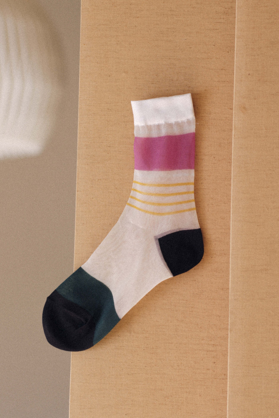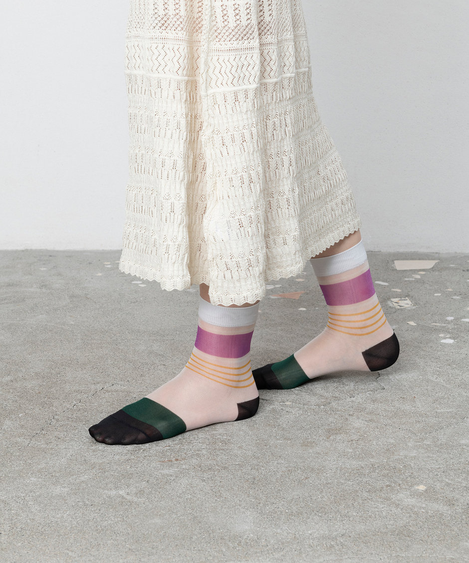 1.【爽やかボーダー×シアー♪】シアーボーダーソックス