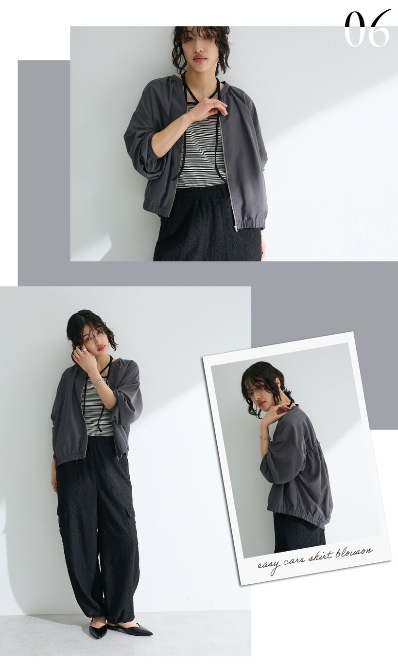 こちらのブルゾンは、裾に施したドロストコードを調整し、コーデに合わせて好きなシルエットに変えられるのが魅力。
