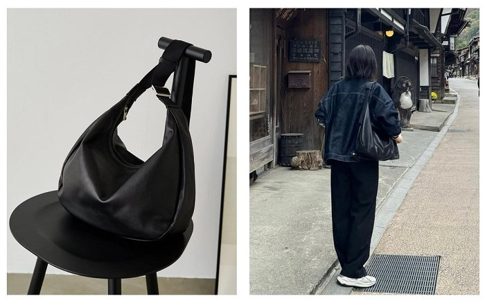 しっかり荷物が入りますが、少なくてもくたっとおしゃれに見えるので本当にいつでも使えるアイテムです。
