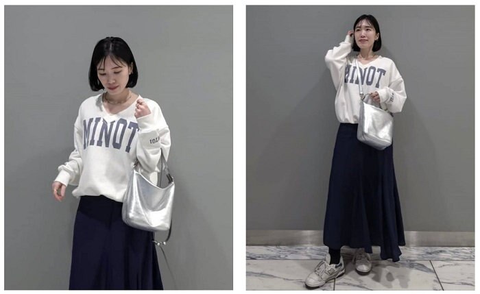フレアなトップスだったりルーズさのあるボトムスだったり、お洋服たちに何かしらデザイン性があることがほとんど。そんなお洋服たちを引き立ててくれます。