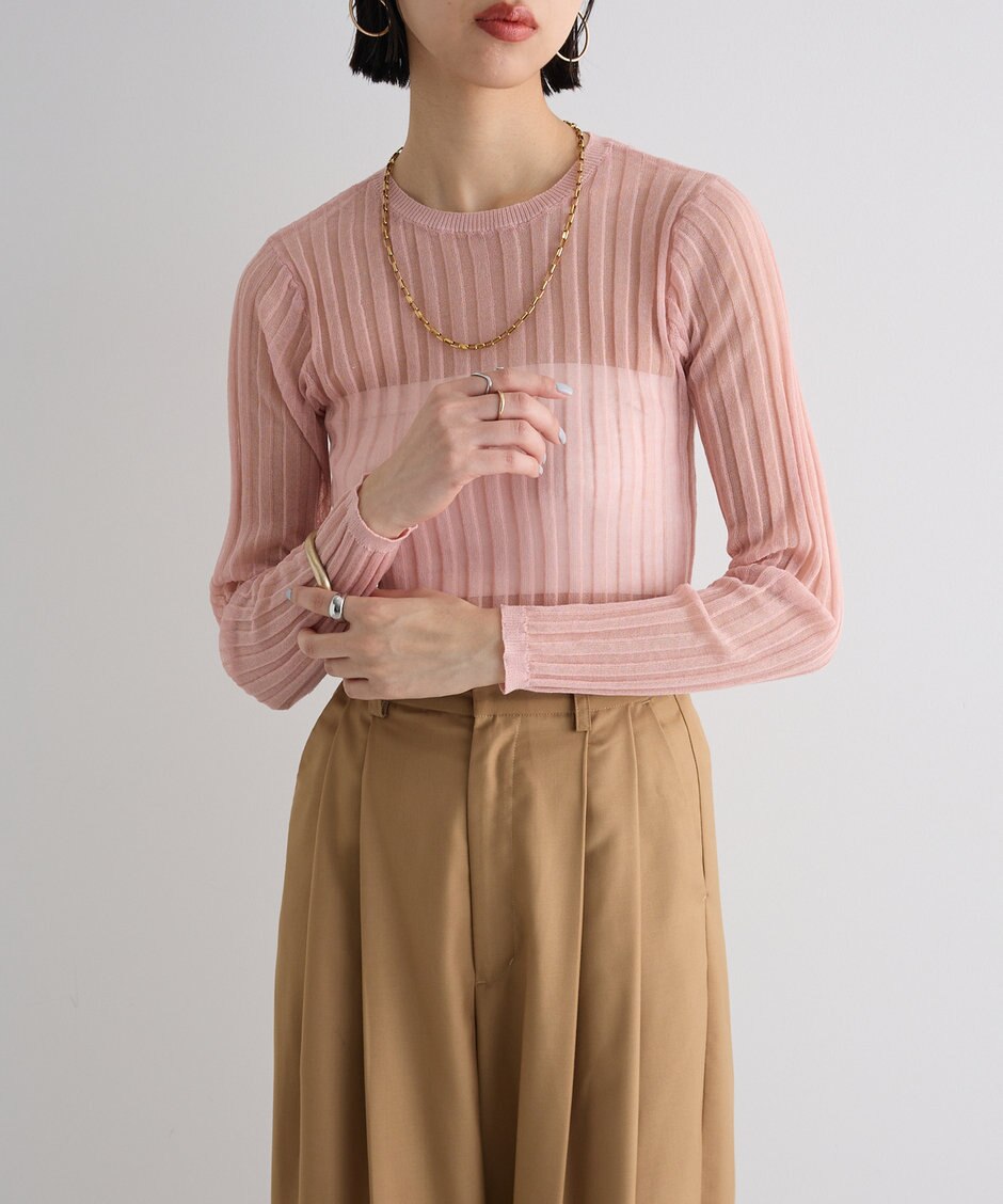 ・トレンドのシースルー素材で仕立てたニットプルオーバー。