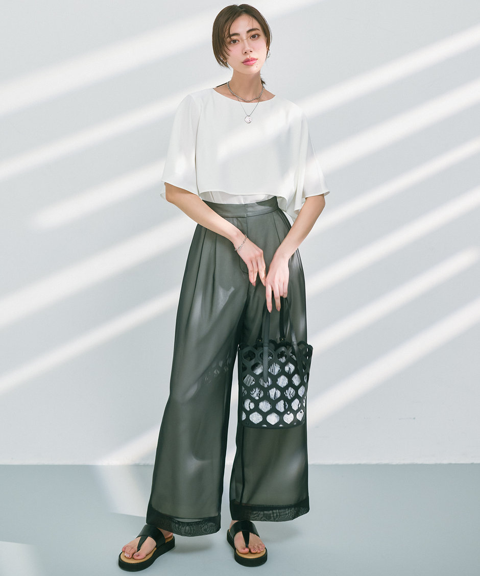 ■華やかデザインと華奢見えを両得 ケープ風レイヤードブラウス