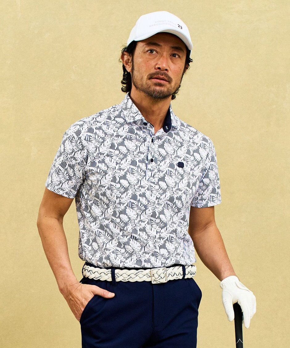 【MEN】【吸水速乾/UVカット】大人が着やすい柄ポロシャツ リゾートなムードも◎リーフ柄 ポロシャツ