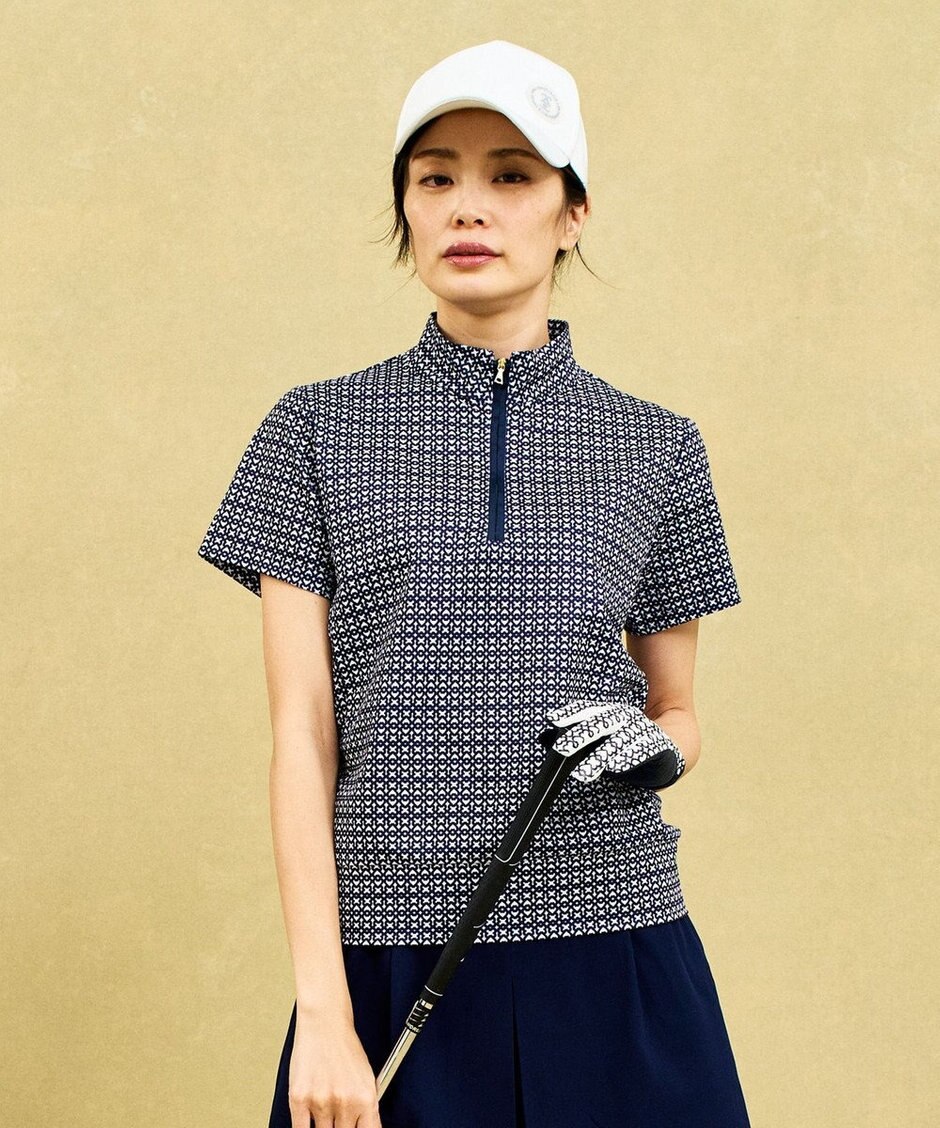 【WOMEN】【吸水速乾/UVケア】エレガントで新鮮なモノグラム柄 ハーフジップカットソー 一枚でコーデが華やかに◎