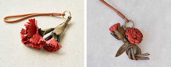 これまでも何度かお届けしてきたカーネーションチャームですが、今年は、くるりと巻かれた茎、ハリのあるチャーミングな葉、みずみずしさを感じる蕾がアクセントに。革を熟知した職人が丁寧に表現した、gentenならではのカーネーションです。