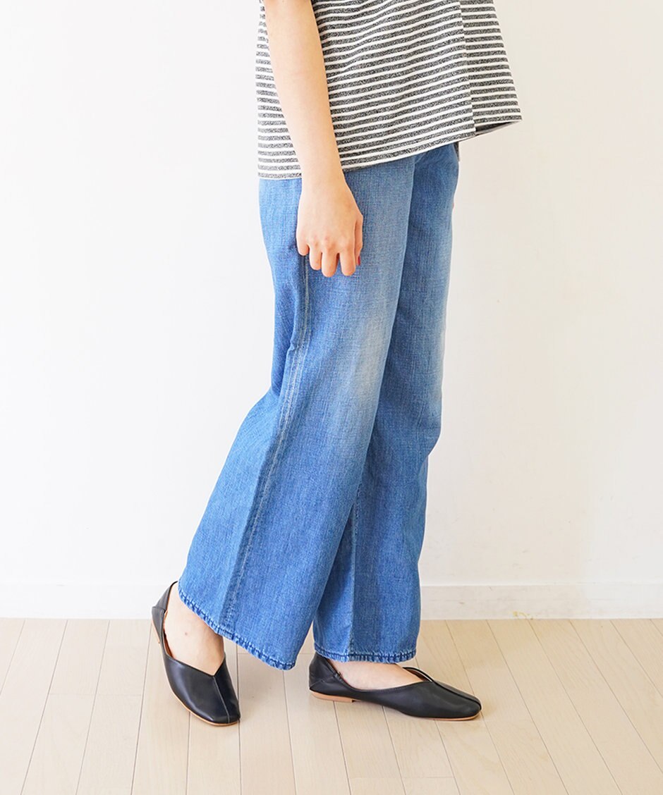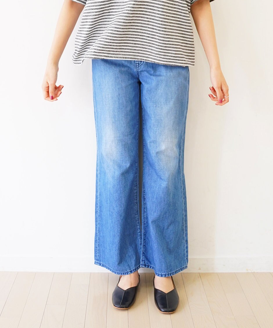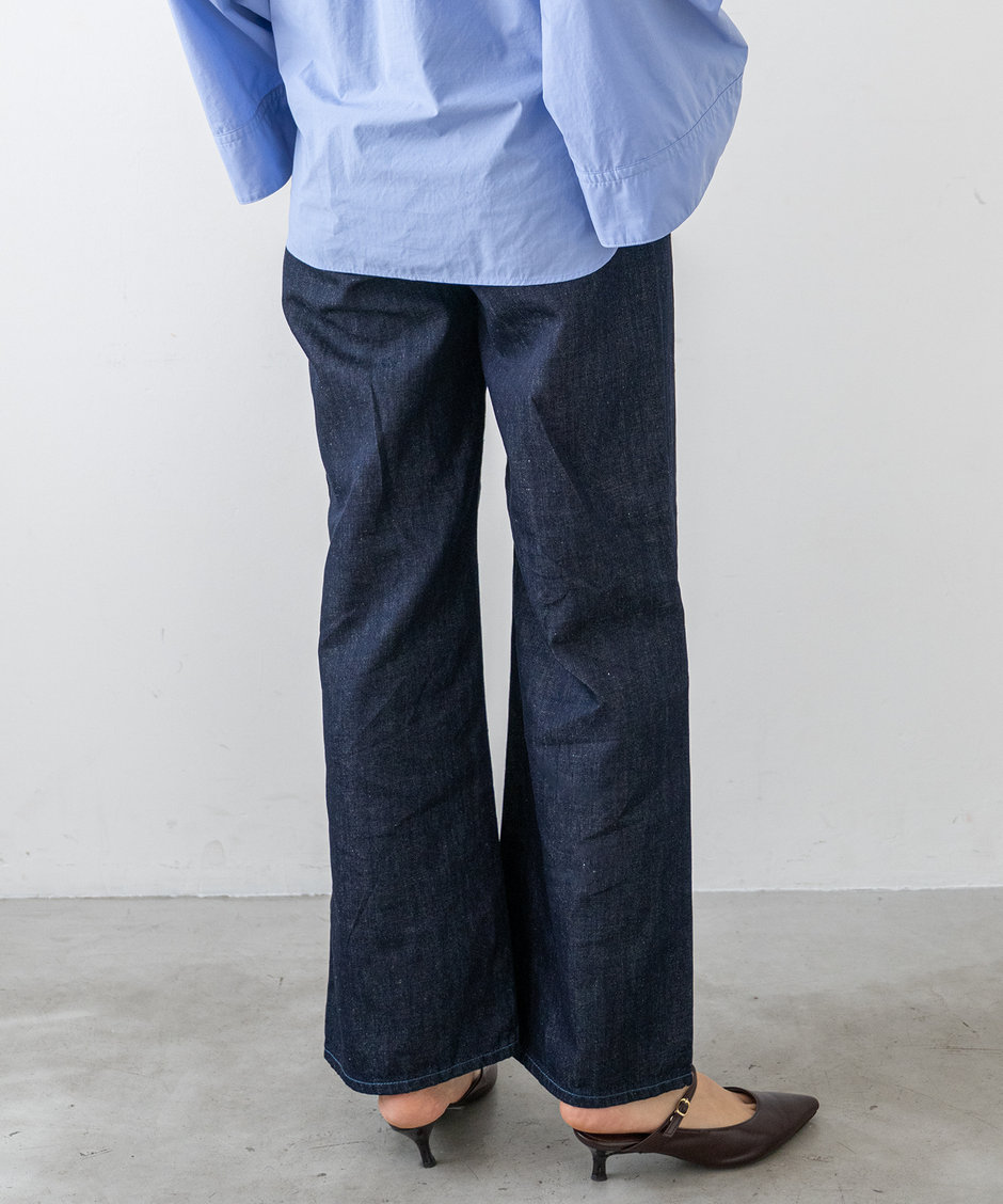 リネン ワイドフレアデニム