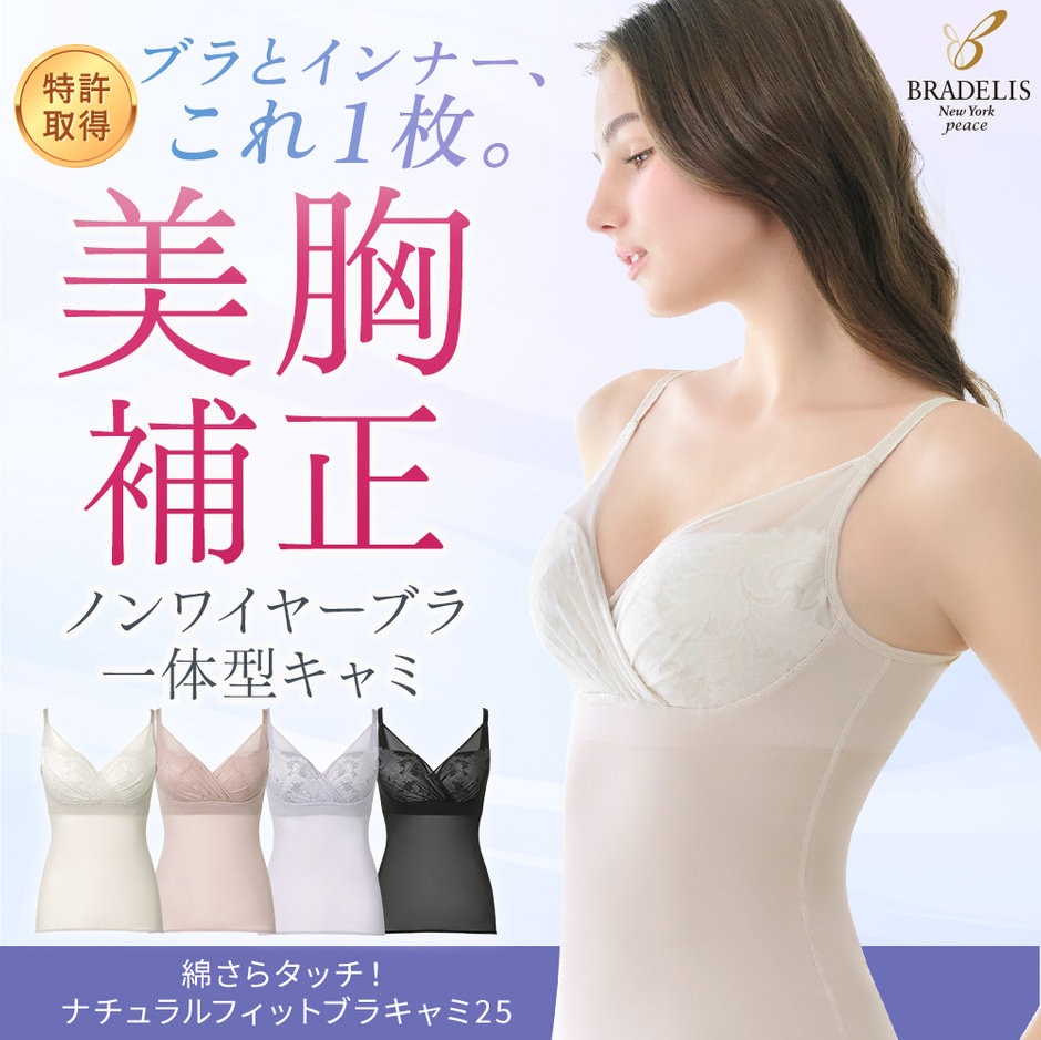 【BRADELIS NewYork peace / ノンワイヤー】綿さらタッチ!ナチュラルフィットブラキャミ25 ブラデリス 補正 下着 カップ付き ブラトップ キャミソール