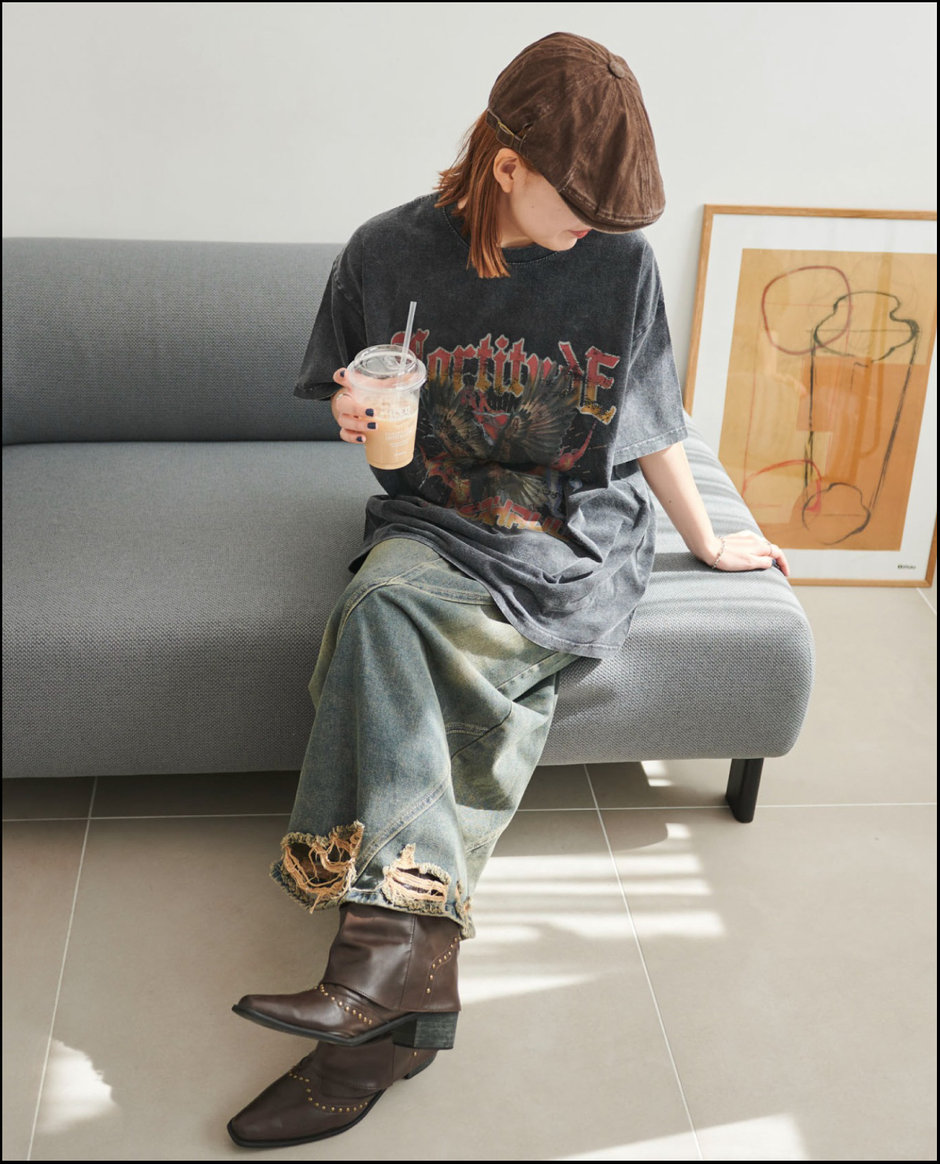 【綿100%】ヴィンテージウォッシュグラフィックTシャツ