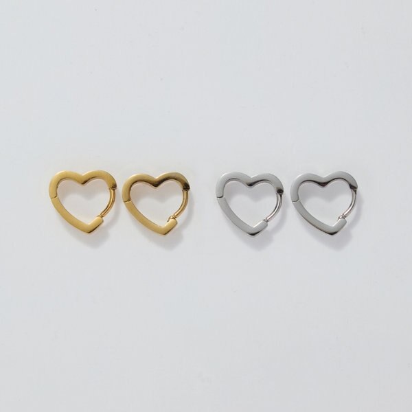 【ステンレス素材のハートフープピアス】