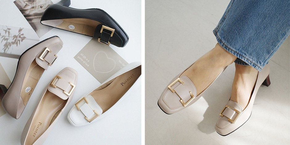 艶消しのゴールドの飾りでリッチに格上げ、大人の脚もとを上品に美しく演出します。