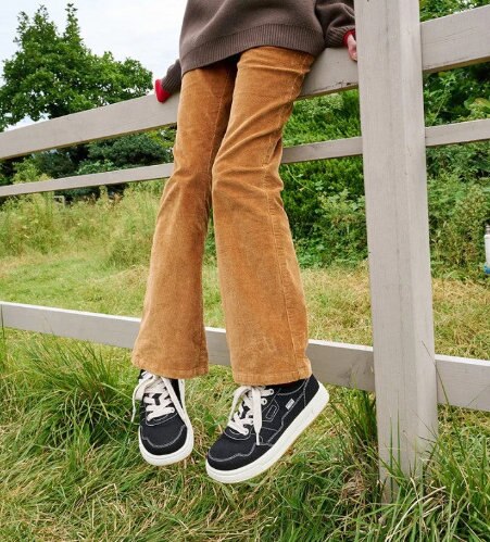 スタイリングも、ブラックならコーデュロイパンツやカレッジスウェットを合わせてほんのりレトロなストリートスタイルに。