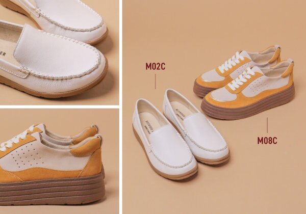 軽い履き心地、柔らかい素材を使った足なじみのよいシューズ。