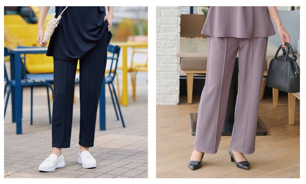 縦ラインを強調するピンタックが入り、足のラインを綺麗に演出してくれます。