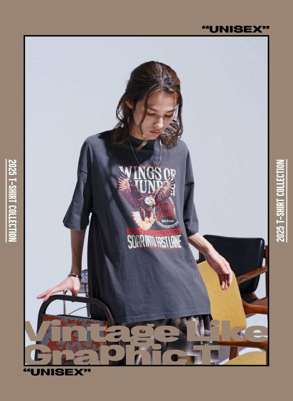 【ユニセックス着用ITEM/SMLサイズ展開】ヴィンテージライクグラフィックT(SS)