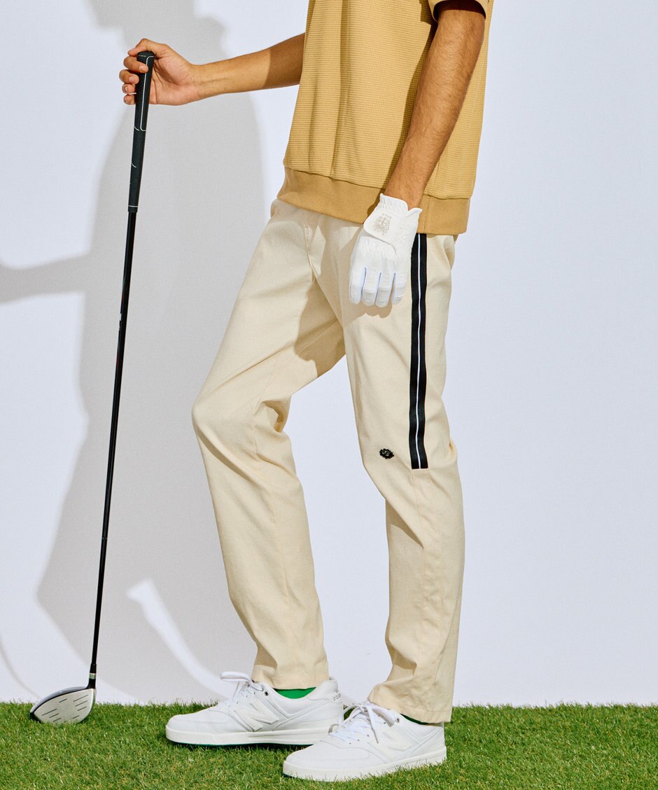 シンプルなテーパードパンツと思いきや、なんと「太もものライン切り替え部分がベンチレーション仕様」に。