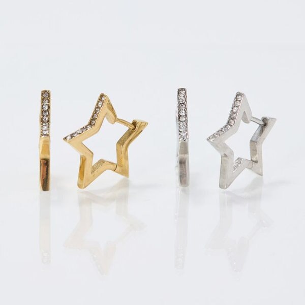 【サージカルステンレス素材で仕上げた、煌めくスターシルエットのワンタッチピアス】