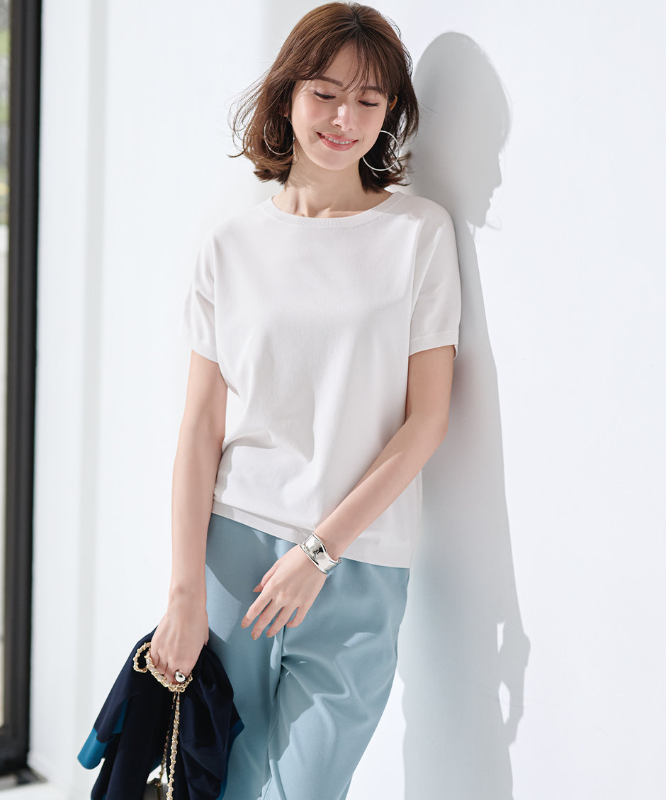 オーバーサイズだけどすっきり着られる落ち感きれいなサマーニット。