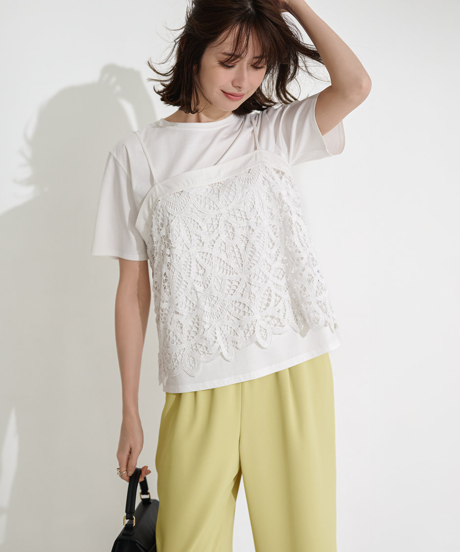 エンブロイダリージャージー レースキャミソール付き カットソー ¥19,910(税込)