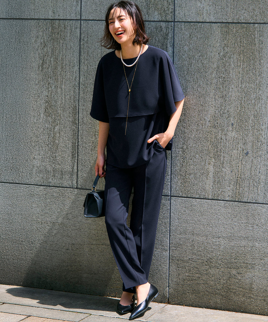 ストレッチジョーゼット ケープデザイン カットソー ¥15,950(税込)