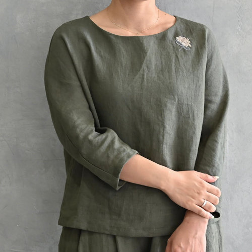 この上質なリネンを、静岡・遠州織物の工場にて丁寧に織り上げ、肌触りがよく、着るほどに柔らかさが増す一枚に仕立てました。