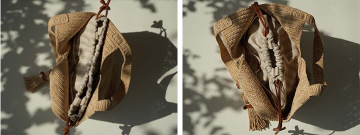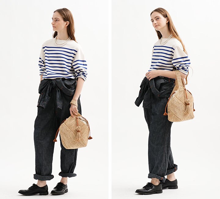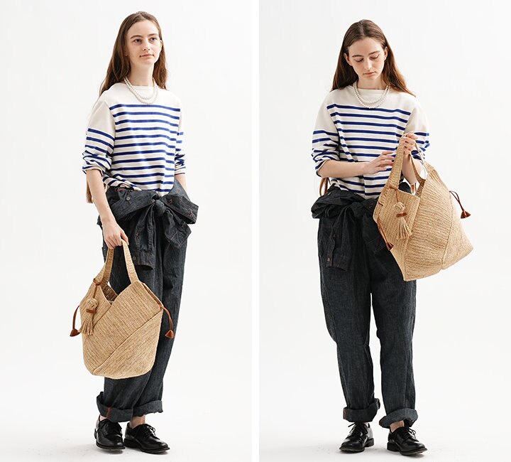 ラフィア+ハンドル付き内巾着で フレキシブルに使える3WAY