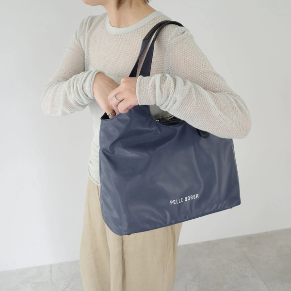 A4サイズのノートがぴったり収まり、マチがしっかりあるので長財布やポーチなどの必需品+αが収納できるサイズ感です。