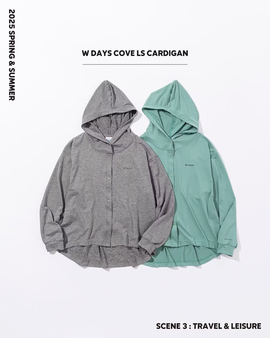 「W Days Cove™ LS Cardigan」はさらりとした着心地で、移動中やホテルでのリラックスウェアとしても活躍。
