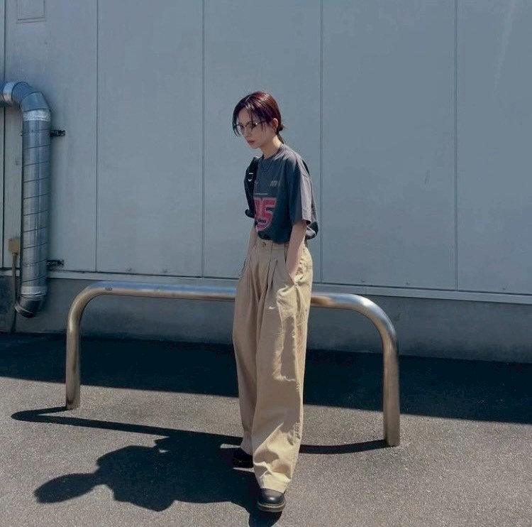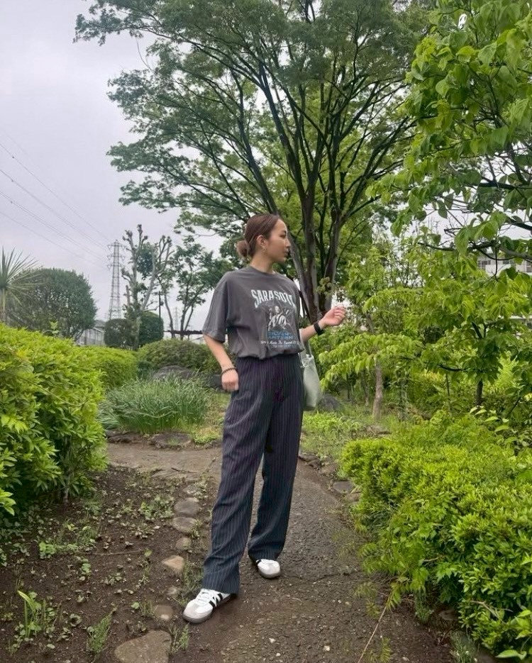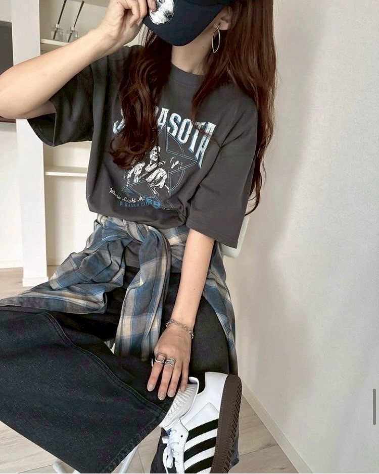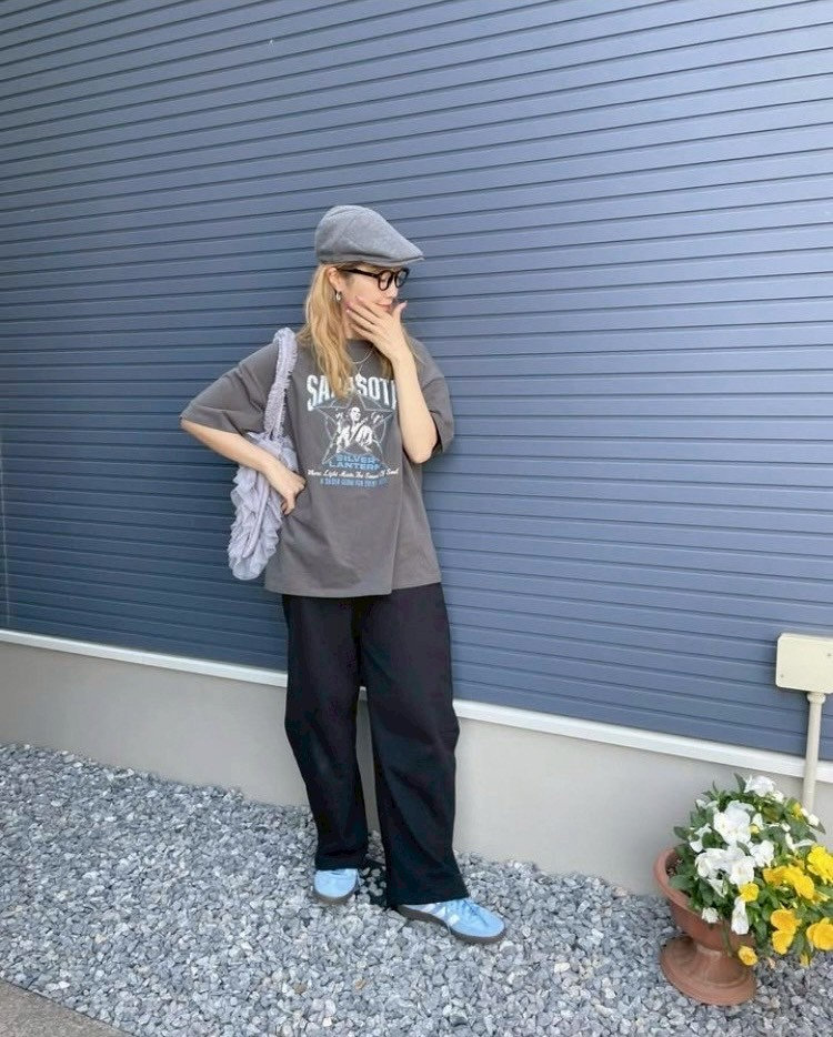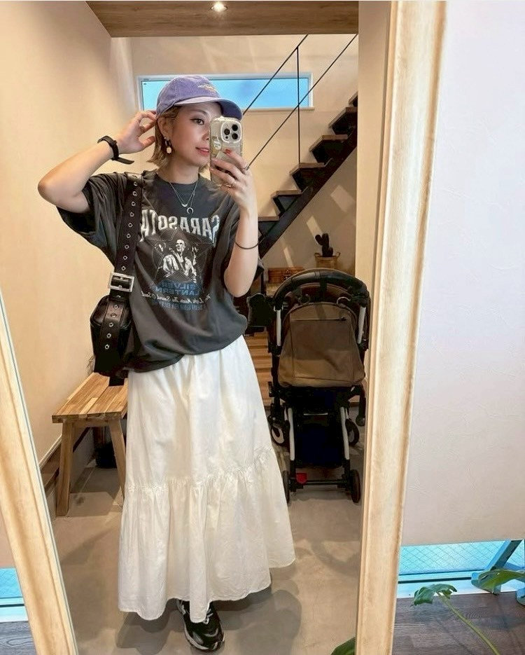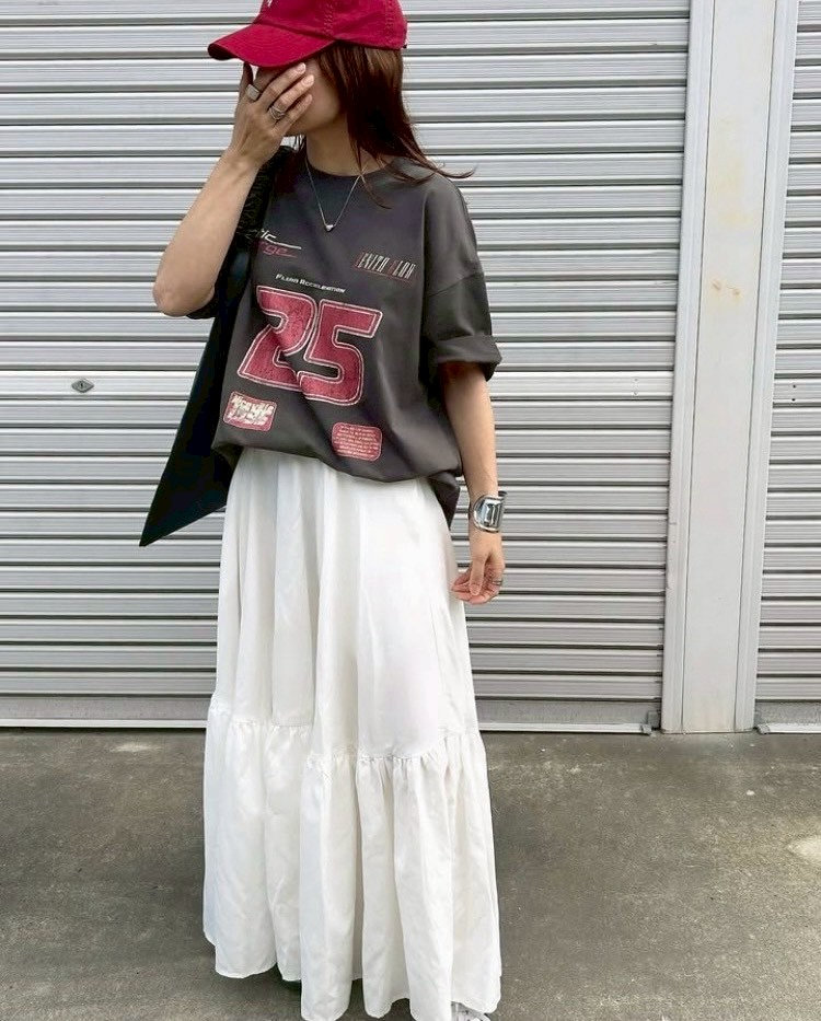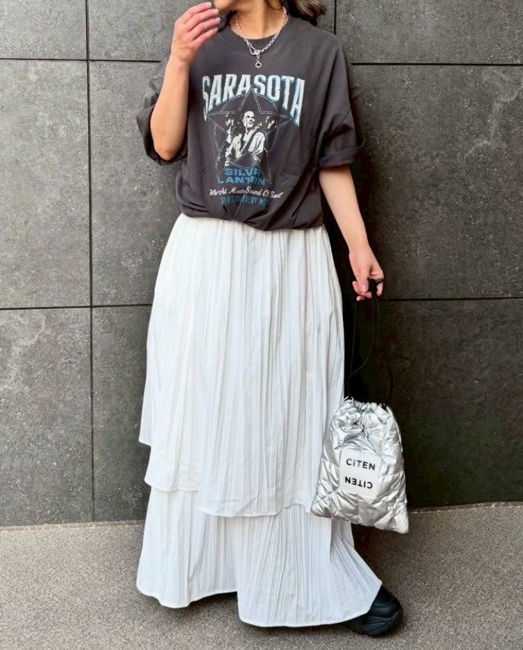 ゆったりしたパンツやスカートと合わせれば、ラフなのにおしゃれ。