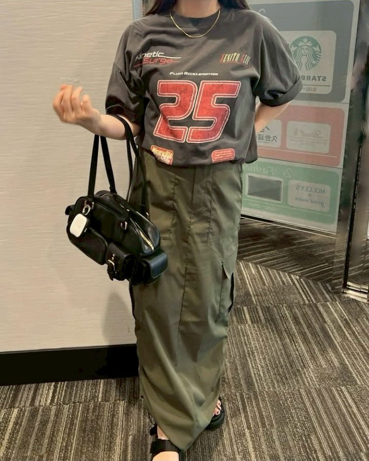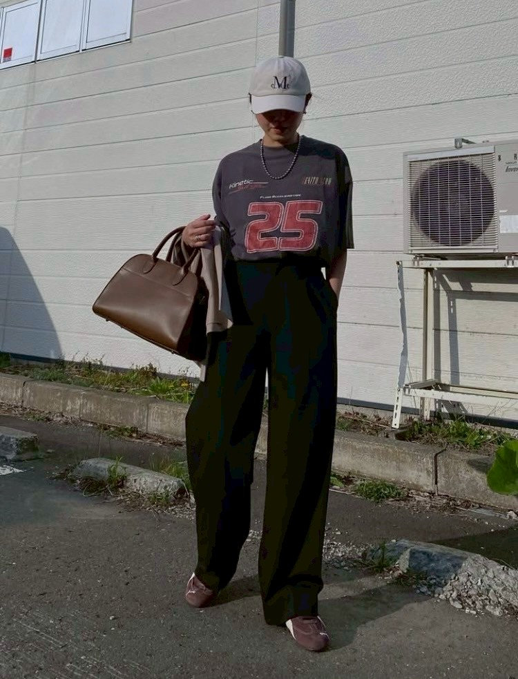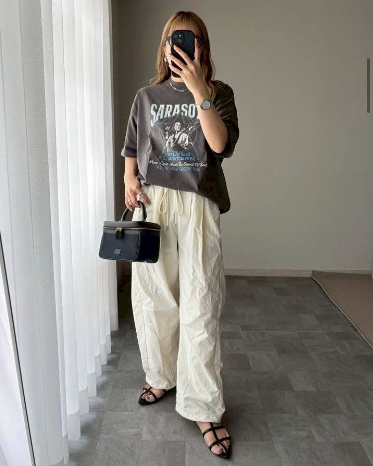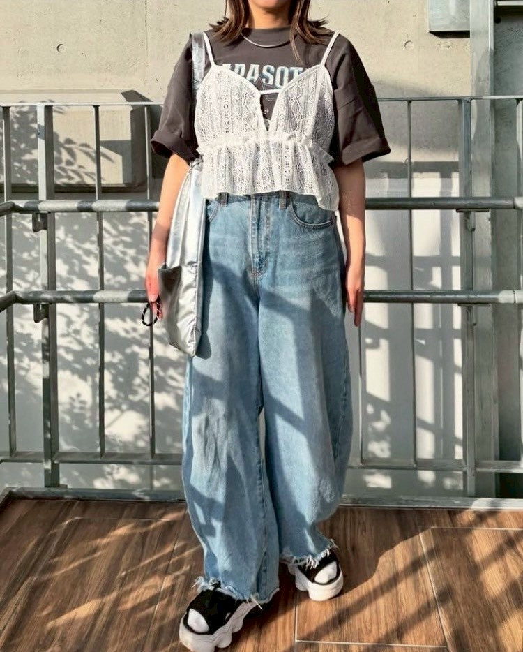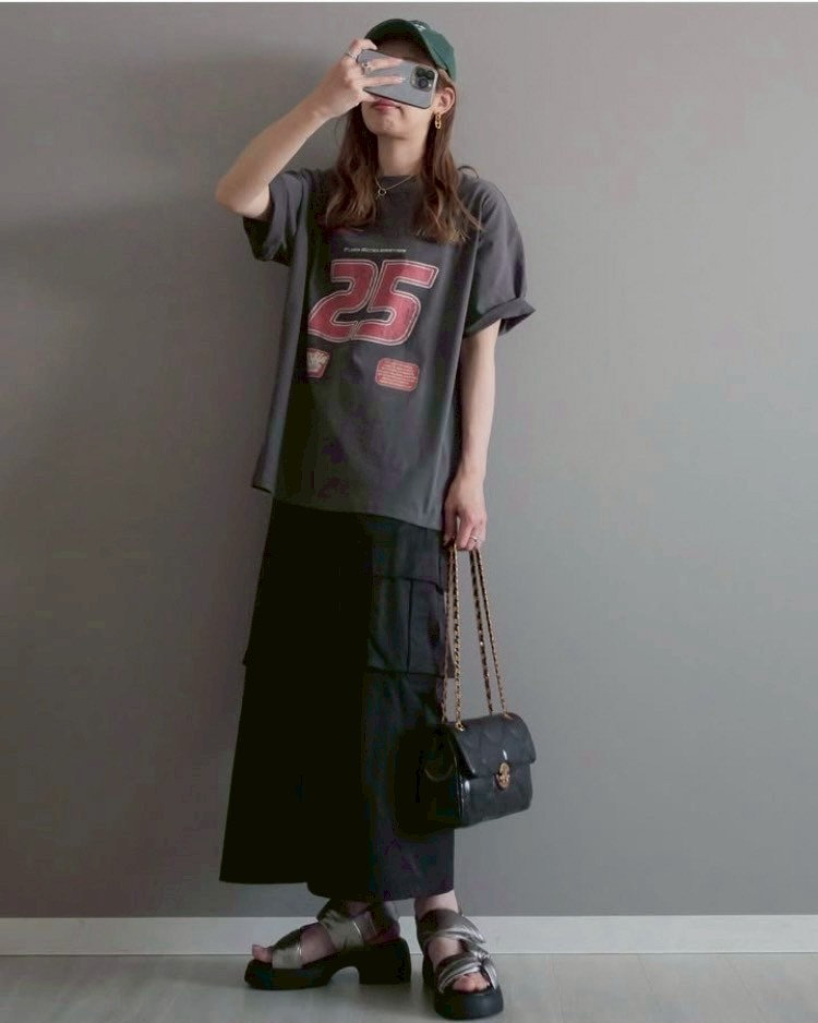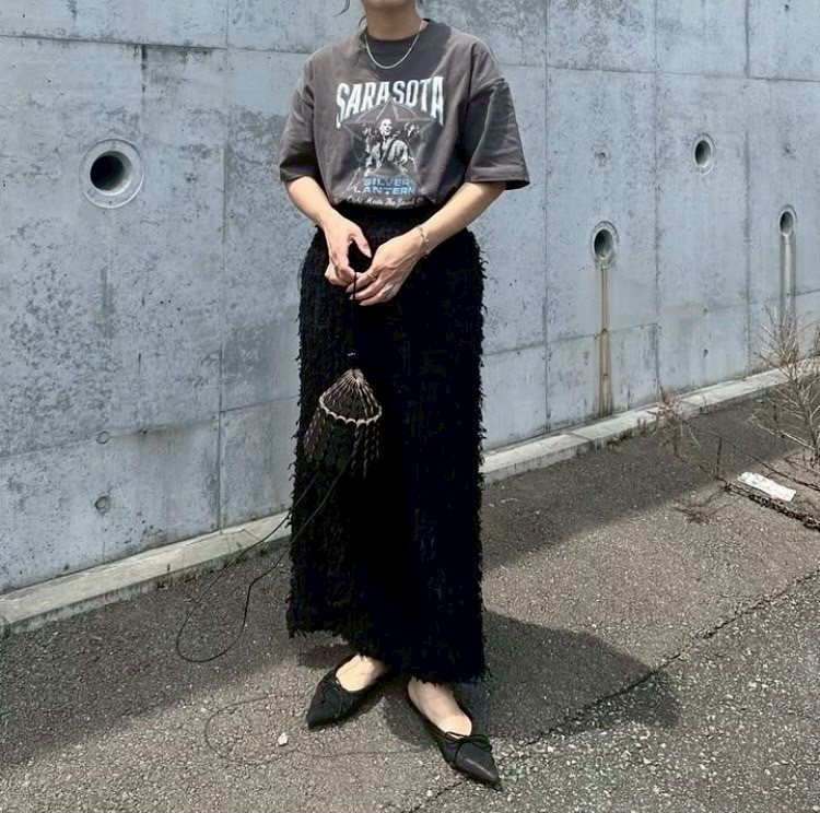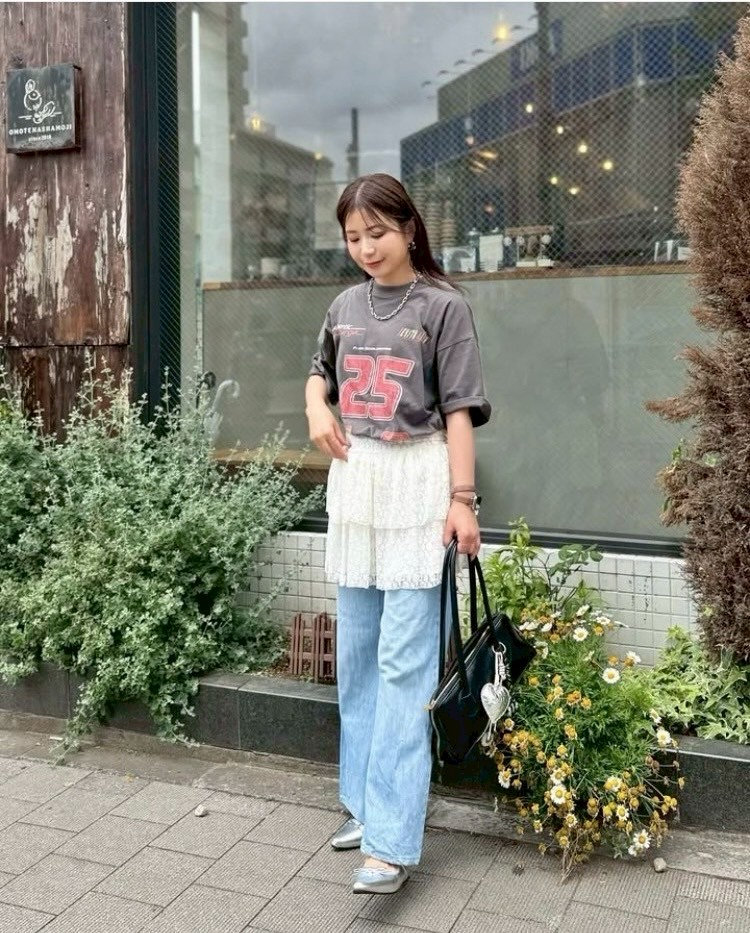 ゆったりしたパンツやスカートと合わせれば、ラフなのにおしゃれ。