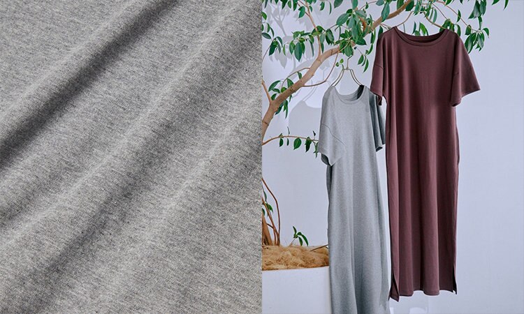カジュアルなカットソーのワンピースでありながら、見た目の上質感のおかげで、ちょっとドレス感のある着こなしもできます。