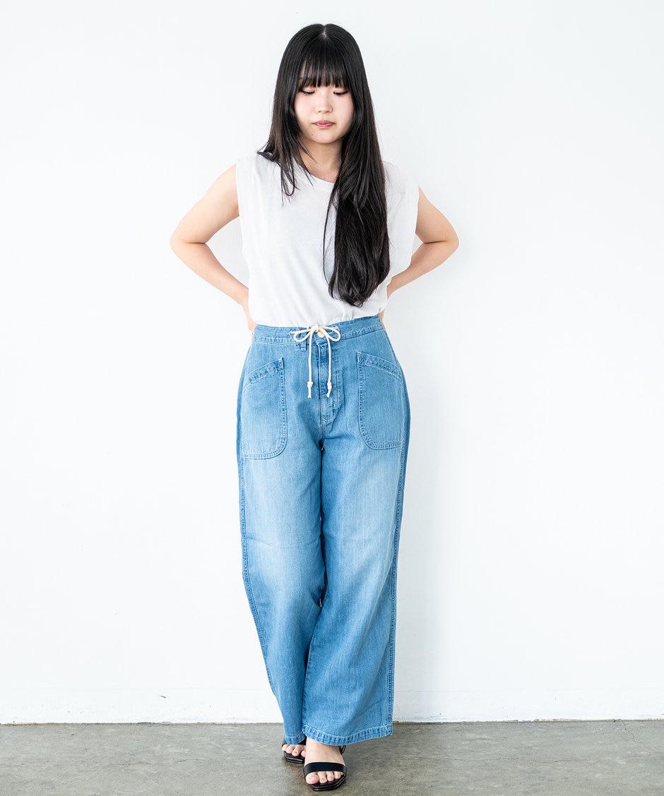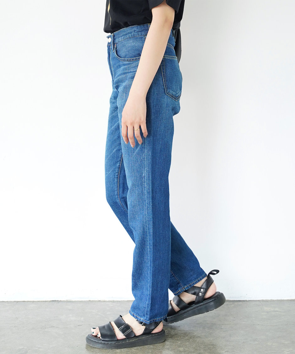 深い股上にワイドめなボーイフィットながらにテーパードがかかった一本。