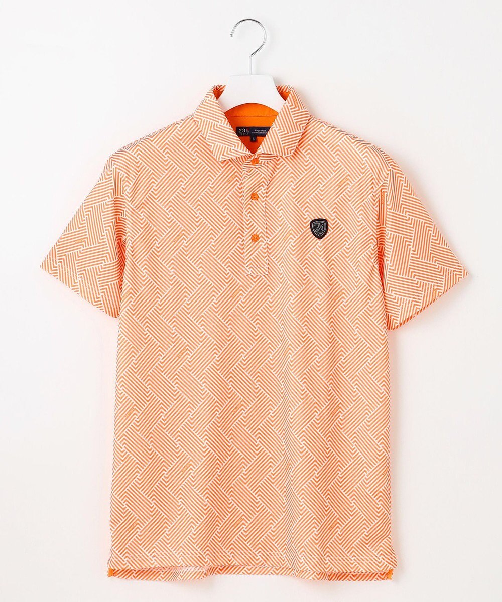【MEN】「HYGRA」幾何柄清涼ポロシャツ 接触冷感 UVケア 吸水速乾 総柄 高機能素材