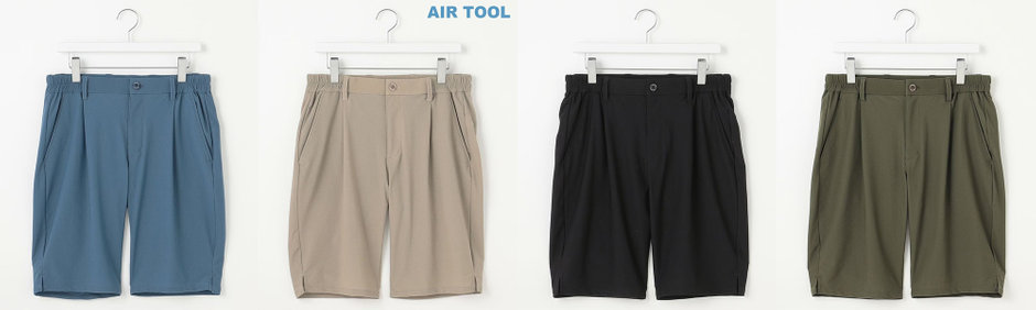 【MEN】機能に優れた新素材「AIR TOOL」ワンタックショートパンツ