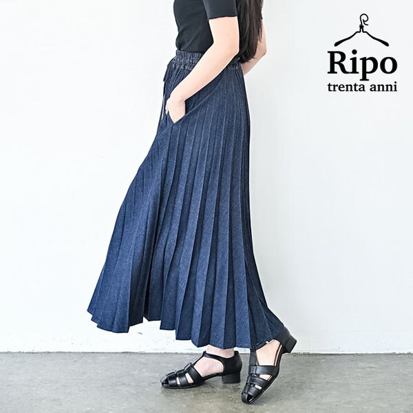 ブランド特許技術を活用してデニムにプリーツ加工がされたスカート。