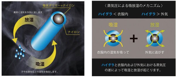 独自の複合糸技術によって生まれた、吸放湿性ナイロン素材。