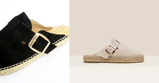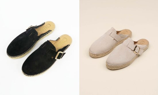 ジュート巻きのナチュラルソールと、マットな質感のスエードが涼やかな雰囲気を演出する、GAIMOのフラットミュール。