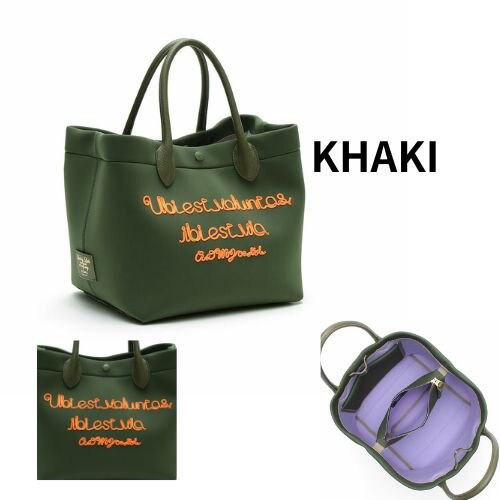 エラスティック(ELASTIC)という伸縮性のある生地に色の異なるナイロン素材を合わせ一枚仕立てにした、ウェットスーツの素材のような、肉厚でハリのあるもっちりとした質感が特徴です。