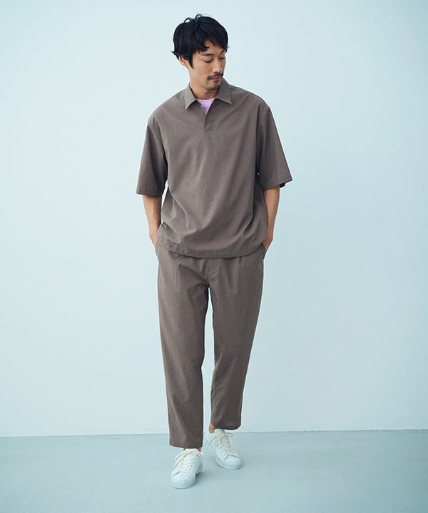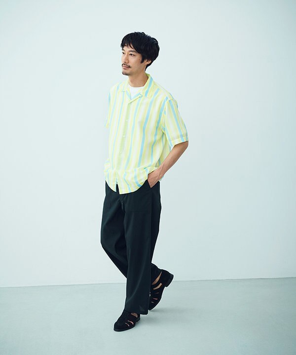 開襟シャツとベーシックパンツ。