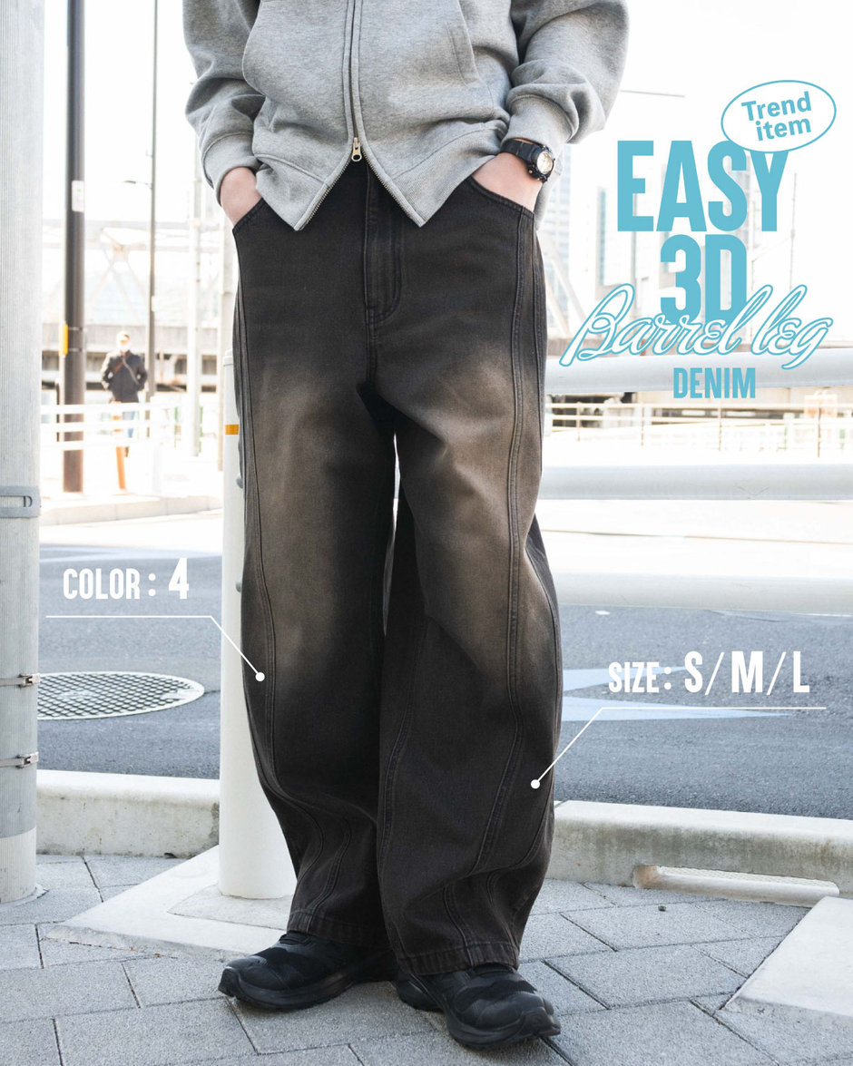 【SMLサイズ展開】イージー3Dバレルレッグデニムパンツ
