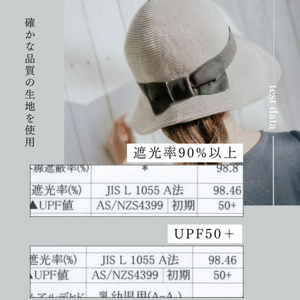 UPF50%+で紫外線対策もしっかり。※商品の下げ札には記載しておりませんが、試験認証済みです。