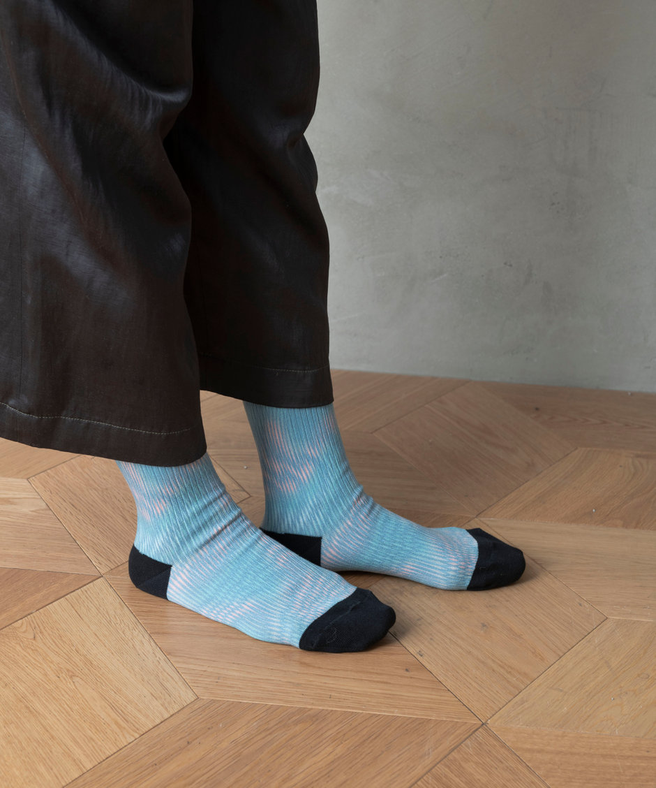 19-21cm、22-24cm、25-27cmと3サイズ2カラーずつの展開で家族や、パートナー、友人とお揃いで履くことができます。細かなリブ地で伸縮性も良く履き心地の良い1足。