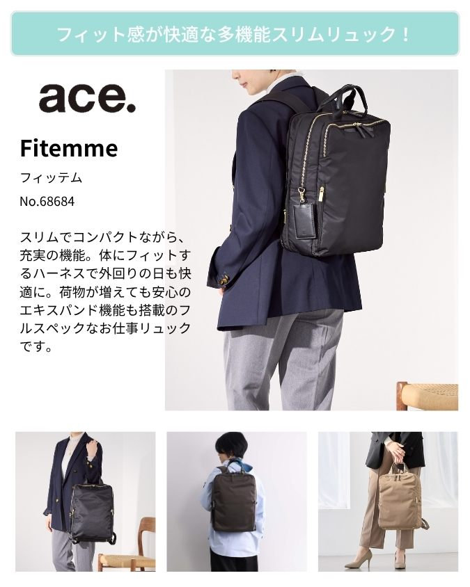 ace. フィッテム レディースビジネスリュック エキスパンド A4 14.0インチPC 68684 エース