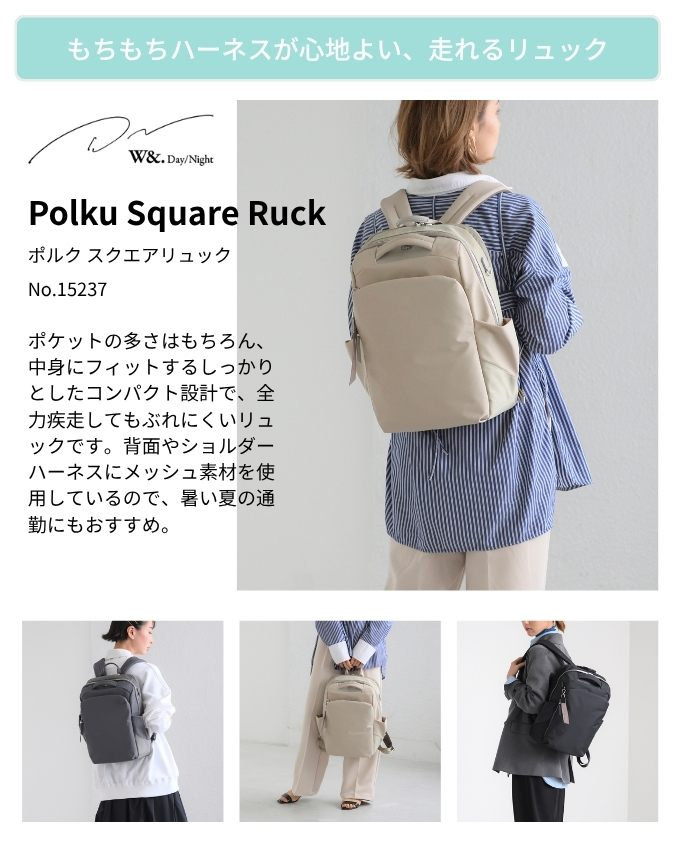 W&.Day/Night ポルク スクエアリュック A4 14.0インチPC 15237 ダブルアンドデイナイト