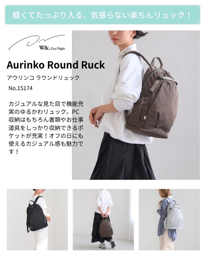 【軽量】 W&.Day/Night アウリンコ ラウンドリュック A4 13.3インチPC 15174 ダブルアンドデイナイト