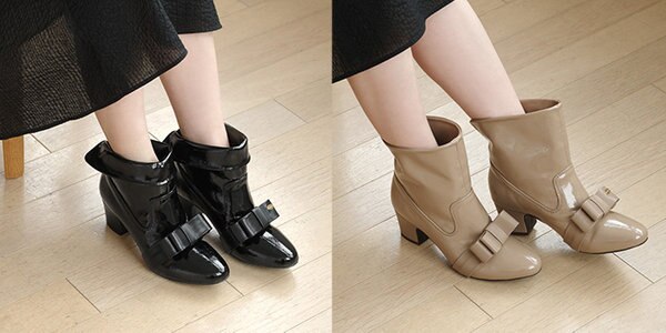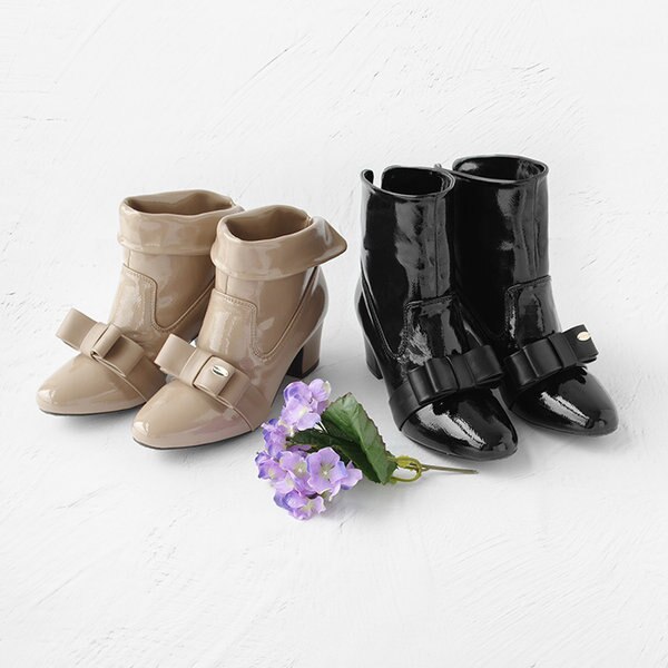 強い雨の日も安心なレインブーツ。コーディネートに合わせて履き口を折り返してもお使いいただけます。大きなリボンが可愛い。安定感のある太めのヒールは5.5cmあり、スカートはもちろん、パンツスタイルでもきれいに決まります。