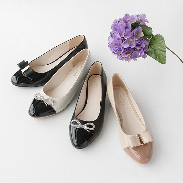 フラットなリボンとキラキラリボンの2つデザインが選べるレインシューズ。やや幅が細目なので幅広の方はワンサイズアップがおすすめ。程よい高さの約3cmウェッジソールと、中底のクッションで、歩きやすさと疲れにくさを両立しました。