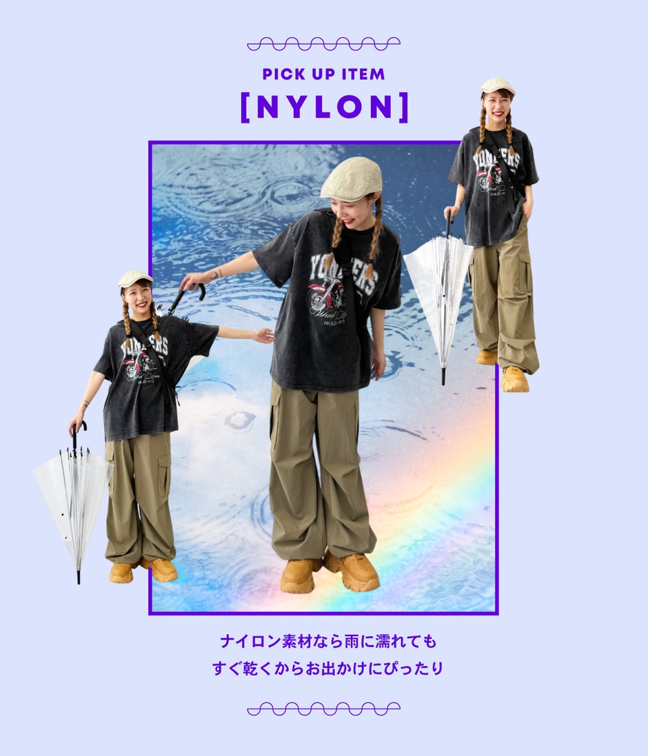 【ウエストゴム/MLサイズ展開】ナイロンイージーパンツ