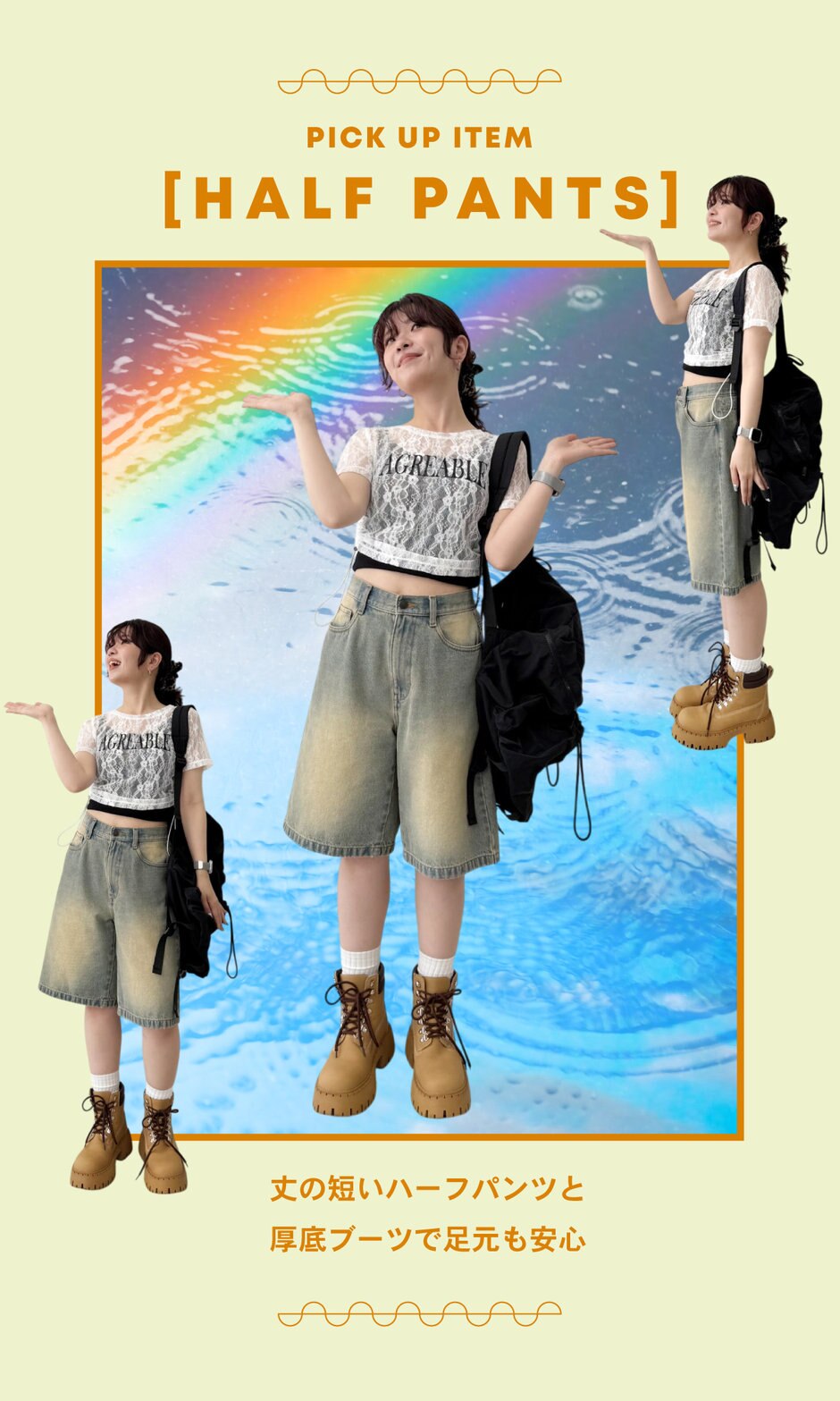 【SMサイズ展開】ヴィンテージウォッシュデニムハーフパンツ