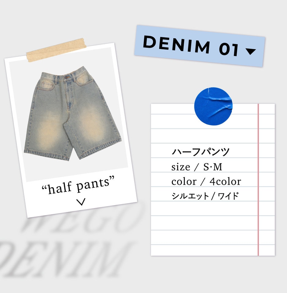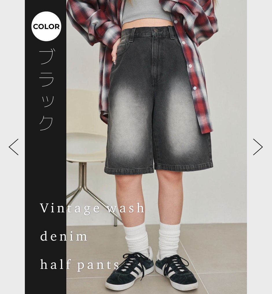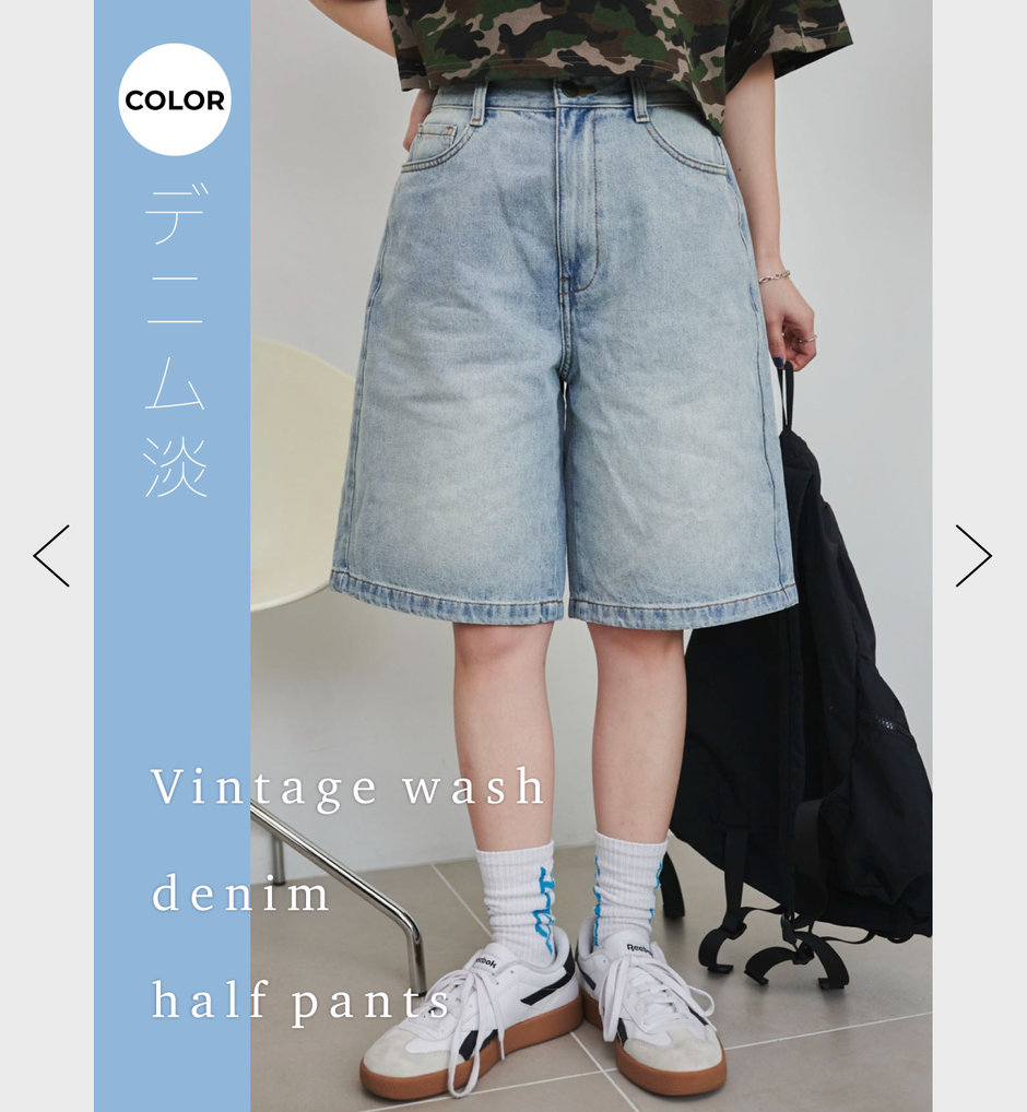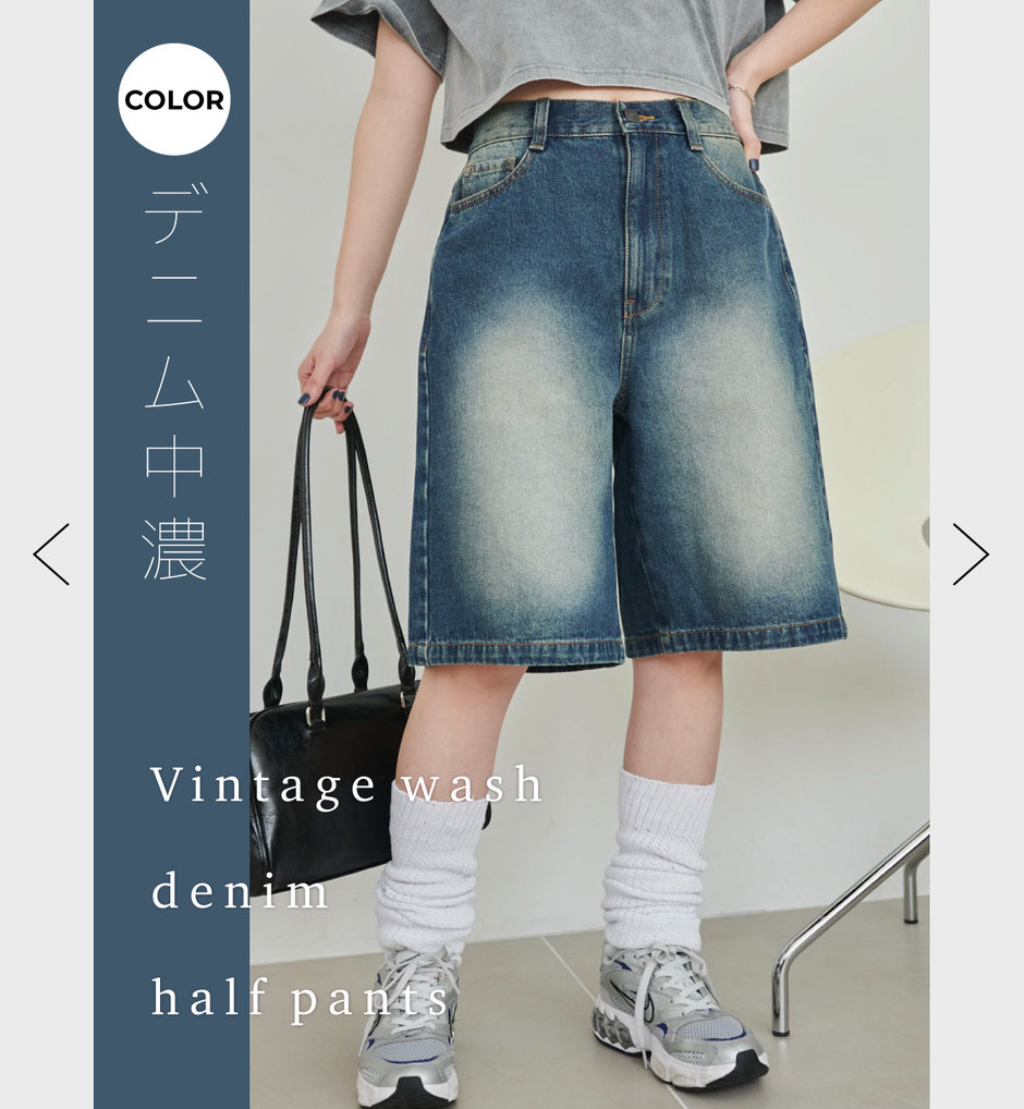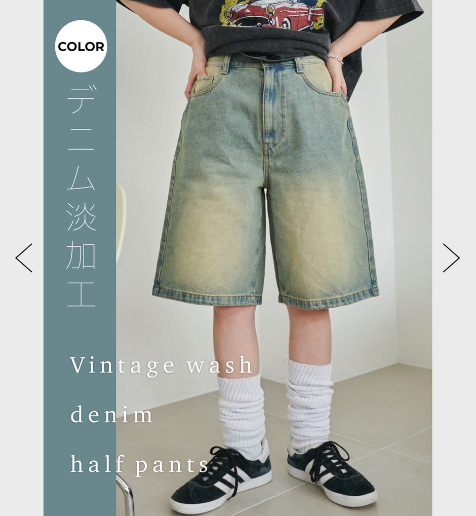 【SMサイズ展開】ヴィンテージウォッシュデニムハーフパンツ