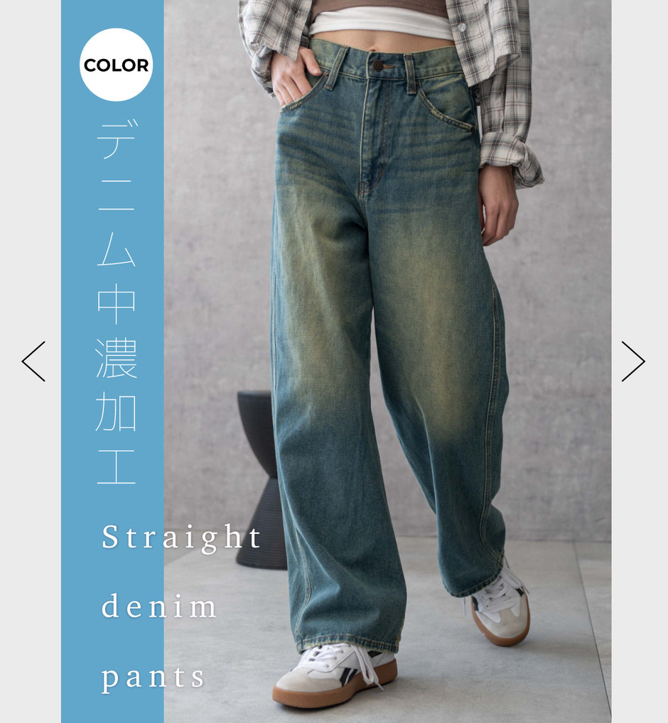 【新色追加/美脚/XS~Lサイズ展開】ストレートデニムパンツ